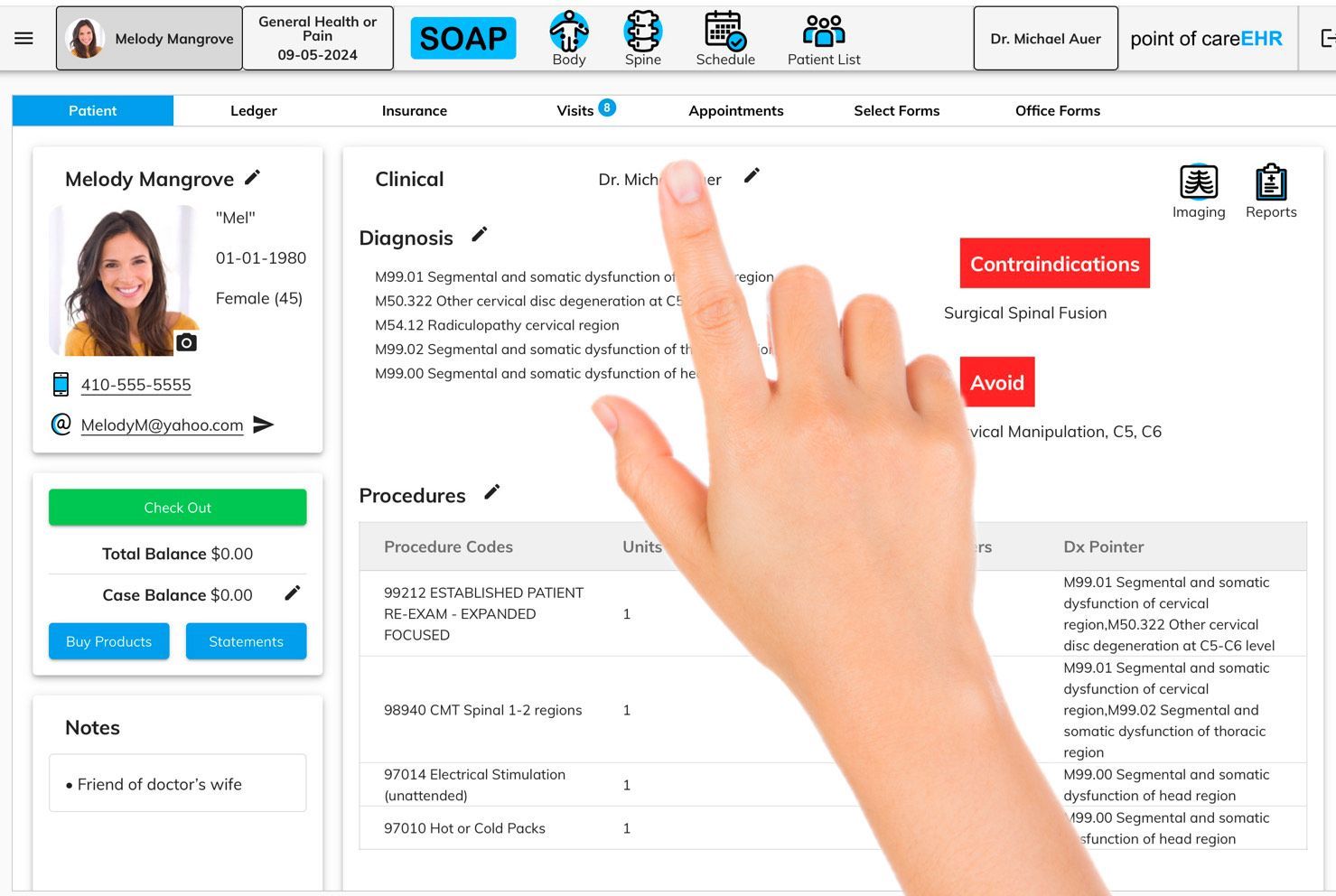 A workflow specific Chiropractic EHR with a user interface that eliminates the monotonous typing, mouse clicking and page changes that slow down your clinical documentation, billing and patient care.